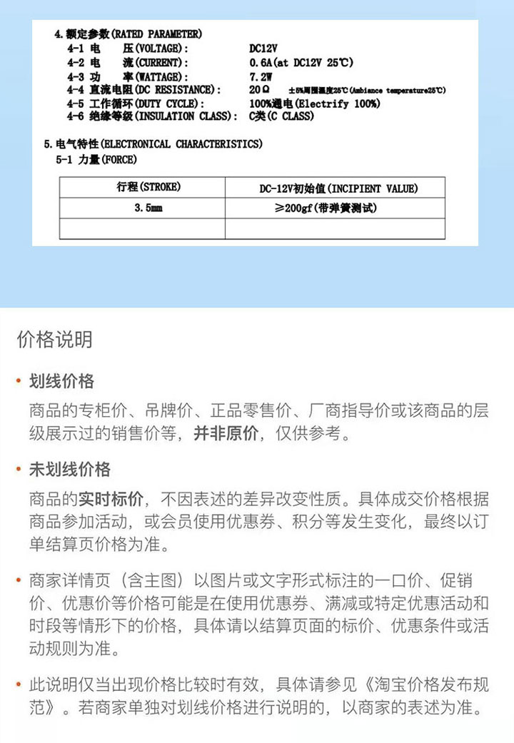 | 电压: | DC12V | 行程: | 3.5mm | 电阻: | 20欧 | 功率: | 7.2W |
