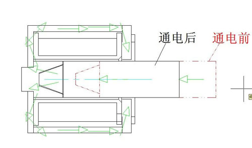 推拉式九游体育app中间的滑动铁芯,线圈通电后产生磁场,磁场将铁芯磁化,铁芯形成叠加磁场,磁力线由一极向另一极运动时产生力,铁芯的一端可以带动一个物体做位移运动,进而实现一个功能动作。